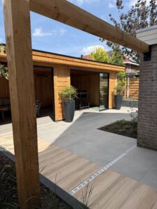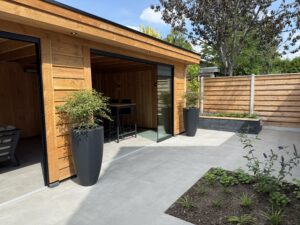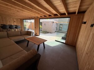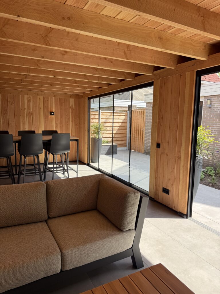 In Vriezenveen hebben we een luxe tuinkamer mogen realiseren waar de klant het gehele jaar door gebruik van kan maken. De klant wilde een onderhoudsvrije tuin met een tuinkamer met twee zitgedeeltes. In samenwerking met een hovenier hebben we de complete tuin aangepakt en de klant volledig ontzorgd.
