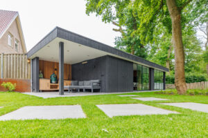 Luxe buitenkamer, Overkapping, Overkapping met schuifdeuren, Overkapping met schuur